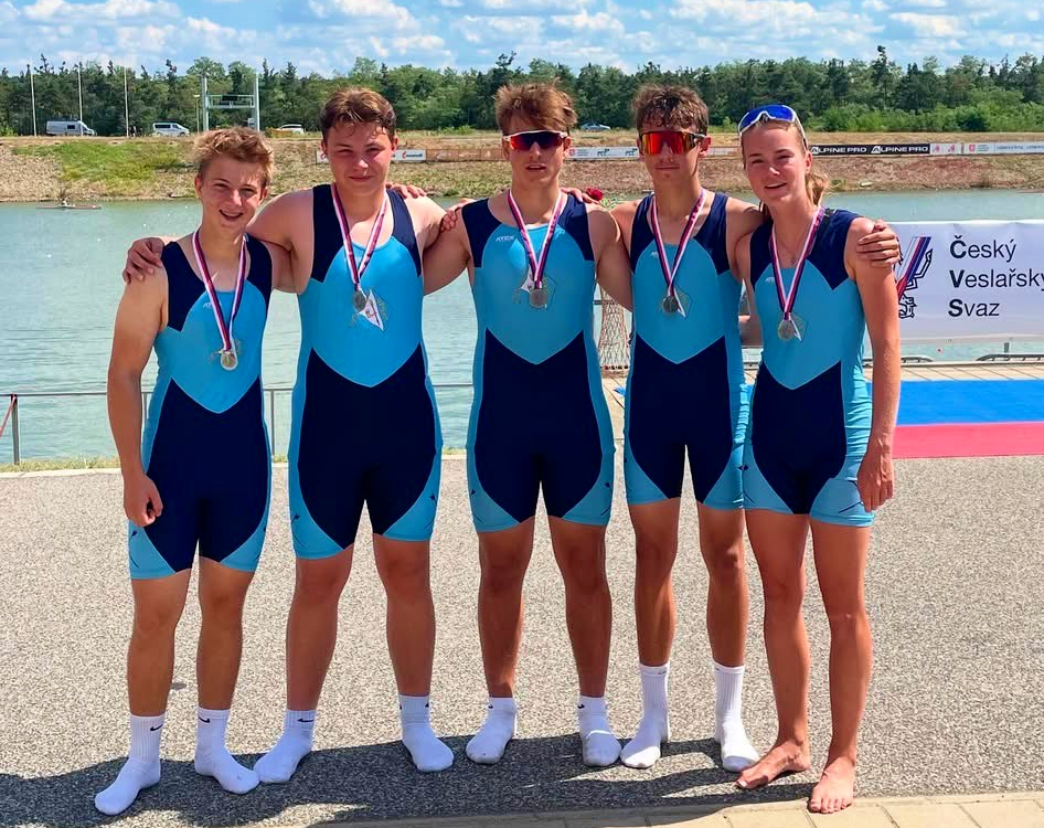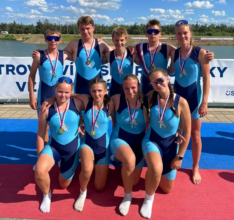 Na MČR dorostu, juniorů a seniorů se nejvíce dařilo dvojici dorostenek Johana KUBEŠOVÁ, Sofie LEE a juniorce Elišce NĚMCOVÉ. Holky se staly dvojnásobnými mistryněmi republiky a to na 2-DKY a 4-DKY společně s Evou Tutterovou a Laurou Hašek. Eliška vybojovala dvě juniorská zlata na noncoxu a párovce a ještě stříbrnou medaili s osmou juniorek. Ta jela ve složení Doušová Simona, Uhrová Helena, Weinholdová Lenka, Němcová Eliška,  Podrazilová Helena, Bloudková Veronika, Šlapáková Kateřina ve společenství s Třeboní. Stříbro přidala i Edita Klapačová (trénujíci v Blesku) na skifu žen lehkých vah. Na dvojskifu žen lehkých vah pak s Karolínou Šímovou přidali bronz. Bronzové medaile z MČR získala i osma juniorů, noncox juniorek, čtyřka s kormidelníkem juniorů a dvojka s mužů. Blesku se tedy dařilo o čemž svědčí i prozatímní první místo v bodování poháru klubů. Gratulujeme všem medailistům a jejich trenérům.