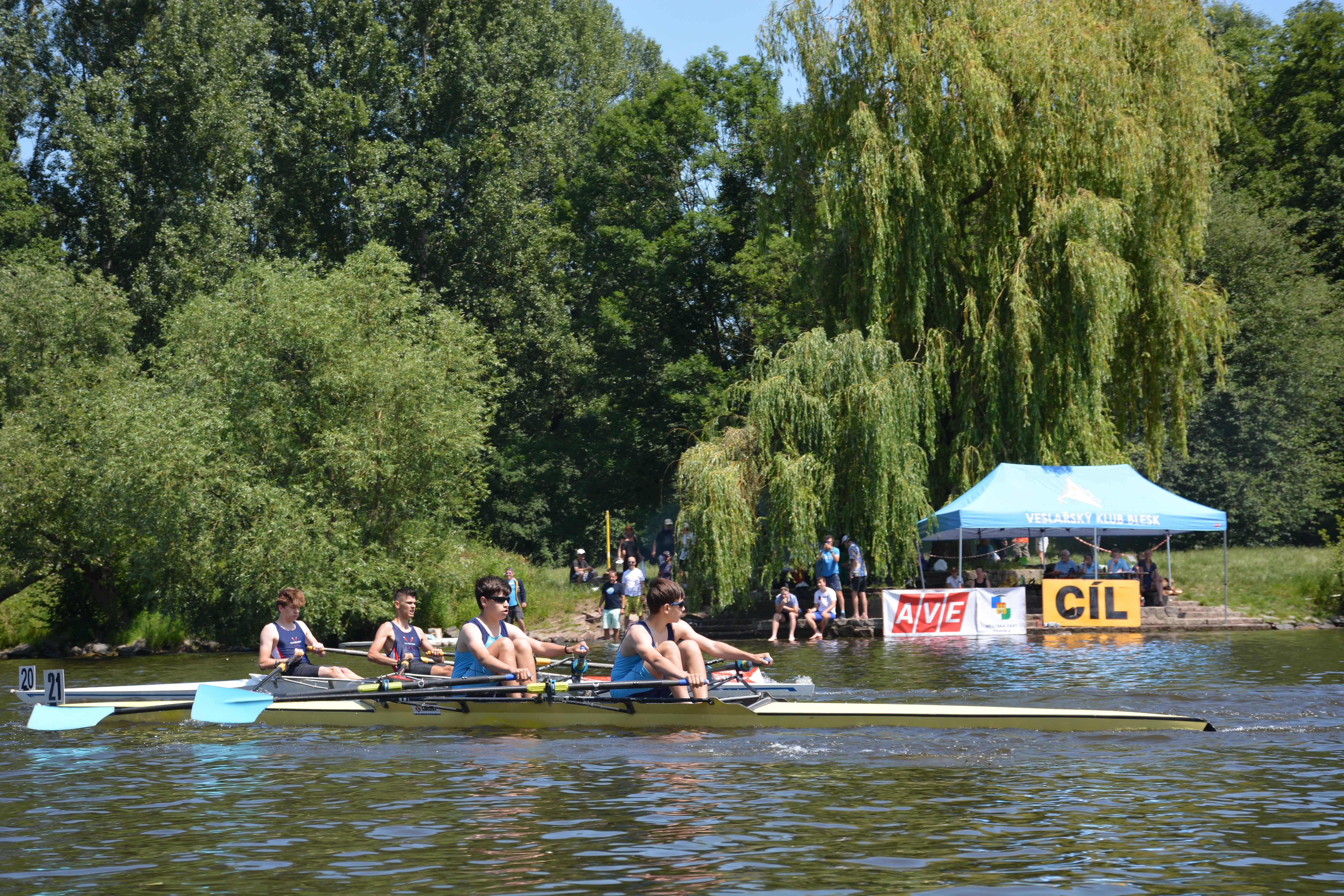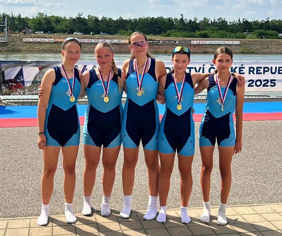Na MČR dorostu, juniorů a seniorů se nejvíce dařilo dvojici dorostenek Johana KUBEŠOVÁ, Sofie LEE a juniorce Elišce NĚMCOVÉ. Holky se staly dvojnásobnými mistryněmi republiky a to na 2-DKY a 4-DKY společně s Evou Tutterovou a Laurou Hašek. Eliška vybojovala dvě juniorská zlata na noncoxu a párovce a ještě stříbrnou medaili s osmou juniorek. Ta jela ve složení Doušová Simona, Uhrová Helena, Weinholdová Lenka, Němcová Eliška,  Podrazilová Helena, Bloudková Veronika, Šlapáková Kateřina ve společenství s Třeboní. Stříbro přidala i Edita Klapačová (trénujíci v Blesku) na skifu žen lehkých vah. Na dvojskifu žen lehkých vah pak s Karolínou Šímovou přidali bronz. Bronzové medaile z MČR získala i osma juniorů, noncox juniorek, čtyřka s kormidelníkem juniorů a dvojka s mužů. Blesku se tedy dařilo o čemž svědčí i prozatímní první místo v bodování poháru klubů. Gratulujeme všem medailistům a jejich trenérům.